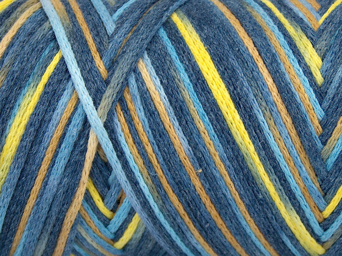 1x250gr Macrame Cotton Print Blue Shades, Yellow Shades