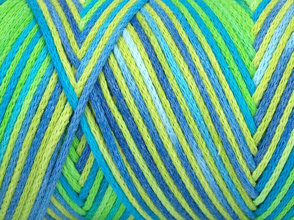 1x250gr Macrame Cotton Print Green Shades, Blue, Lilac