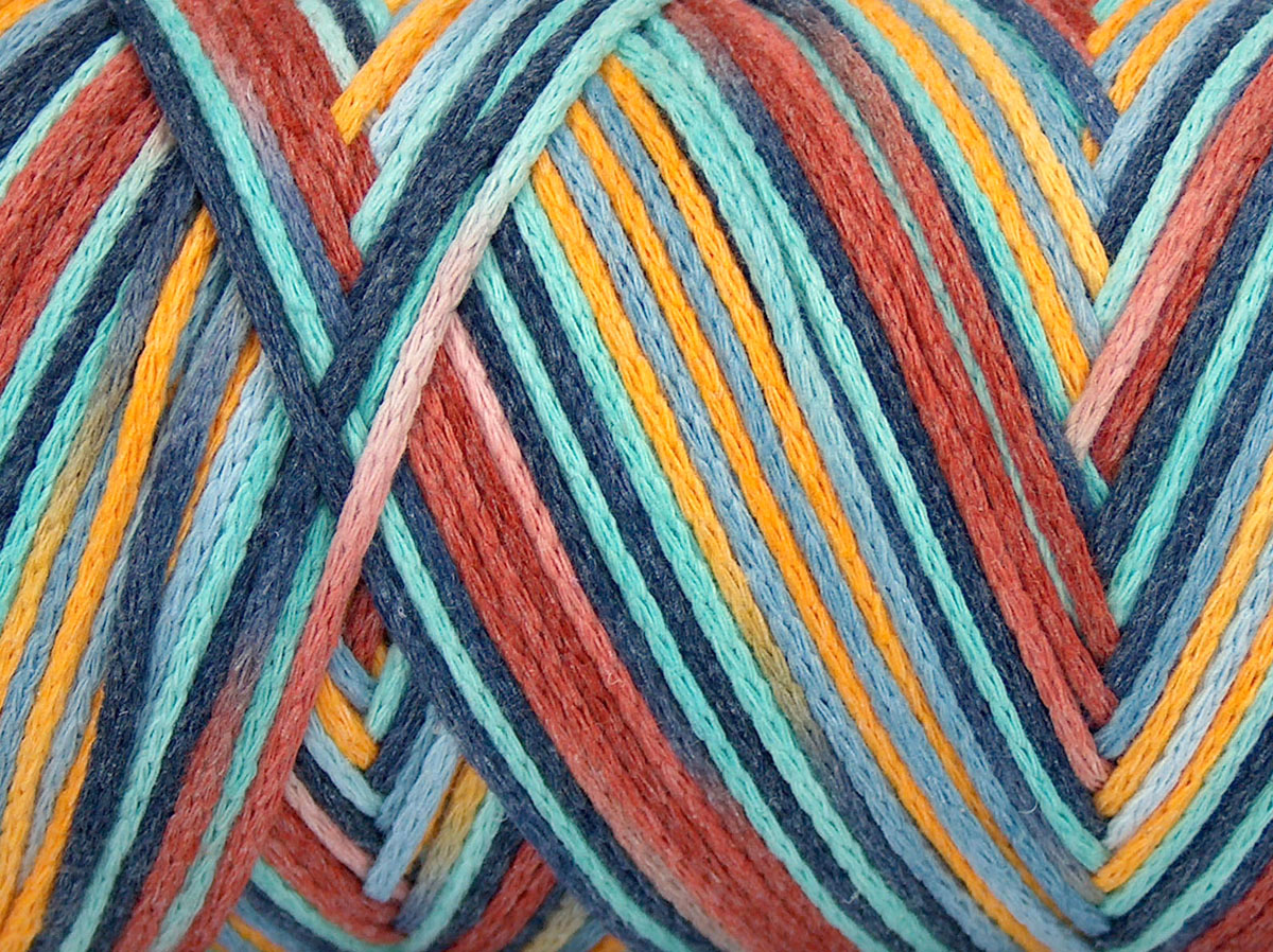 1x250gr Macrame Cotton Print Copper, Gold, Mint Green, Blue Shades