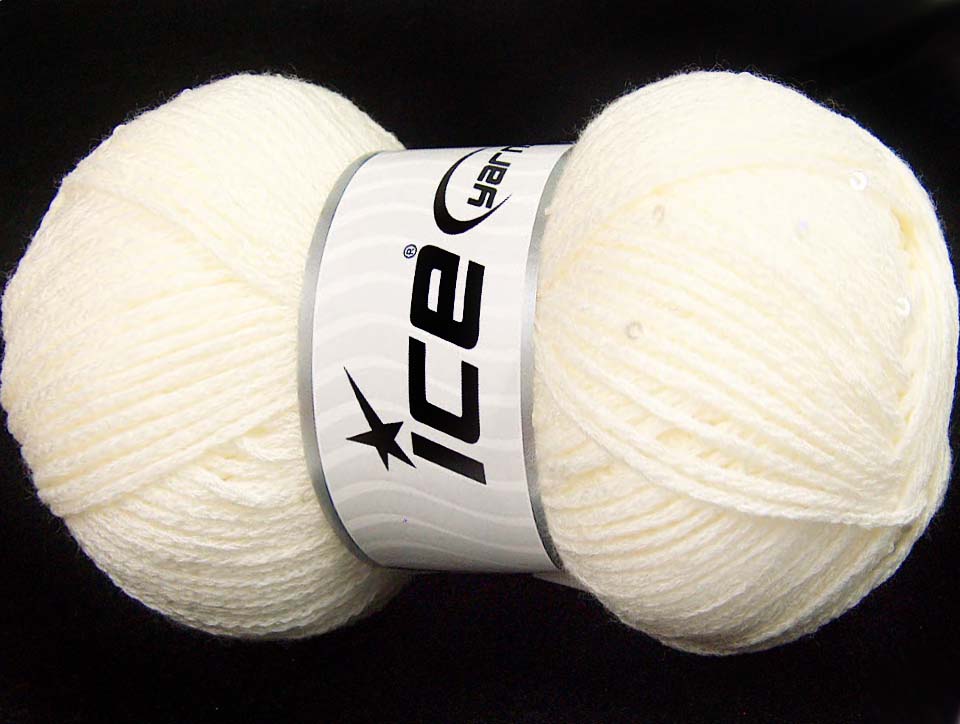 SKU:fnt2-64444 Needle Size:EU 5mm | US 8 Color:Ecru Brand:Ice Yarns Length:210m 230ydper ball Fiber Content:2% Paillette, 98% Acrylic Weight:100gr 3.53oz per ball