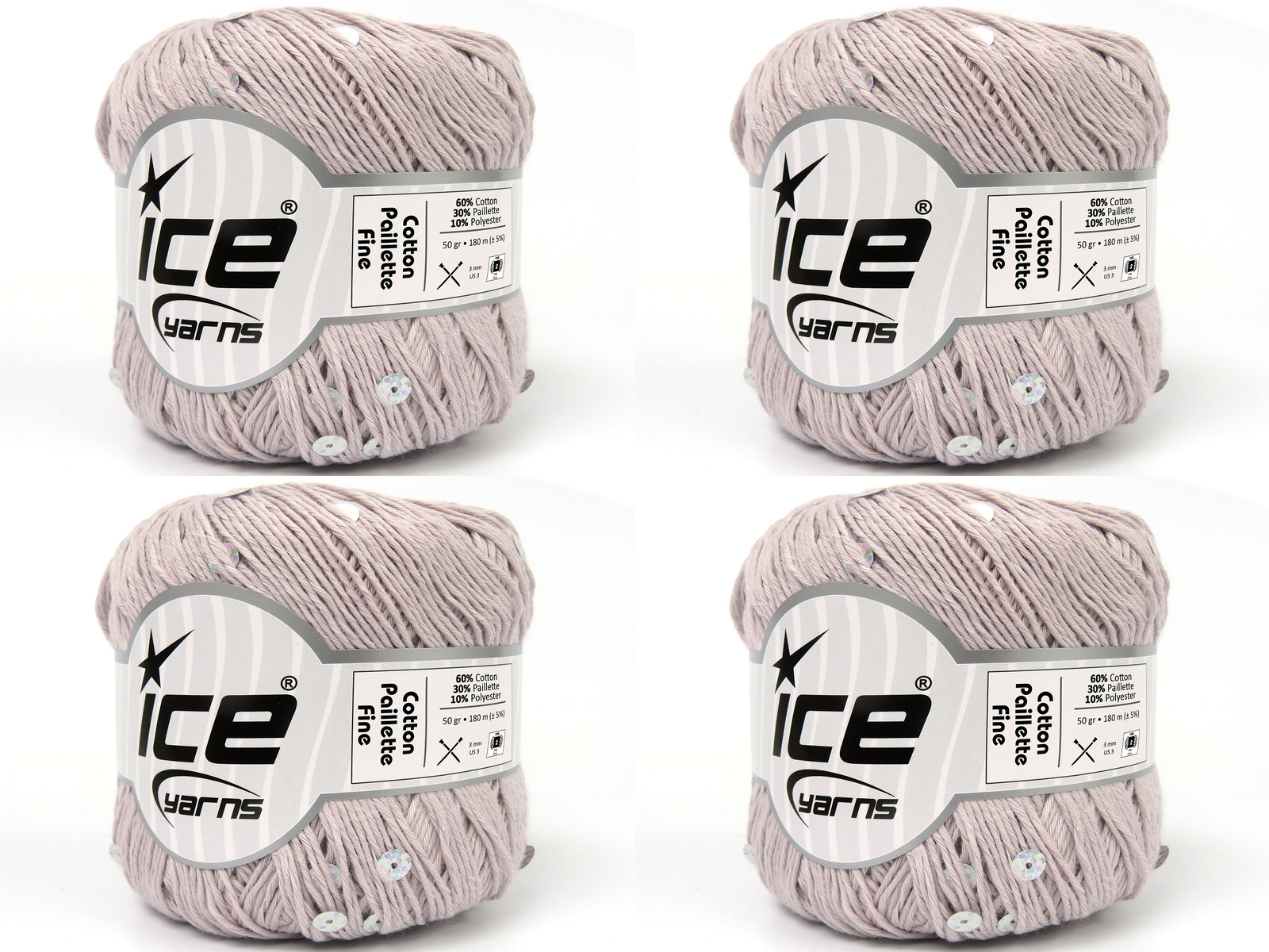 SKU:fnt2-83776 Needle Size:EU 3mm | US 3 Color:Beige Brand:Ice Yarns Length:180m 197ydper ball Fiber Content:30% Paillette, 10% Polyester, 60% Cotton Weight:50gr 1.76oz per ball