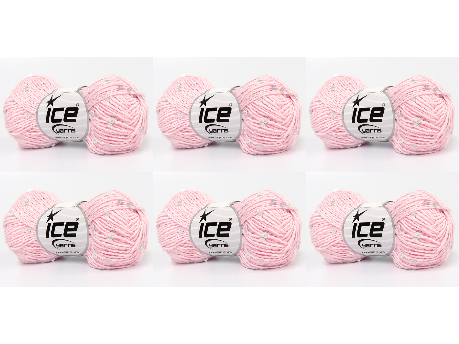 SKU:fnt2-83351 Needle Size:EU 3mm-4mm | US 3-6 Color:Baby Pink Brand:Ice Yarns Length:140m 153ydper ball Fiber Content:18% Paillette, 82% Cotton Weight:50gr 1.76oz per ball
