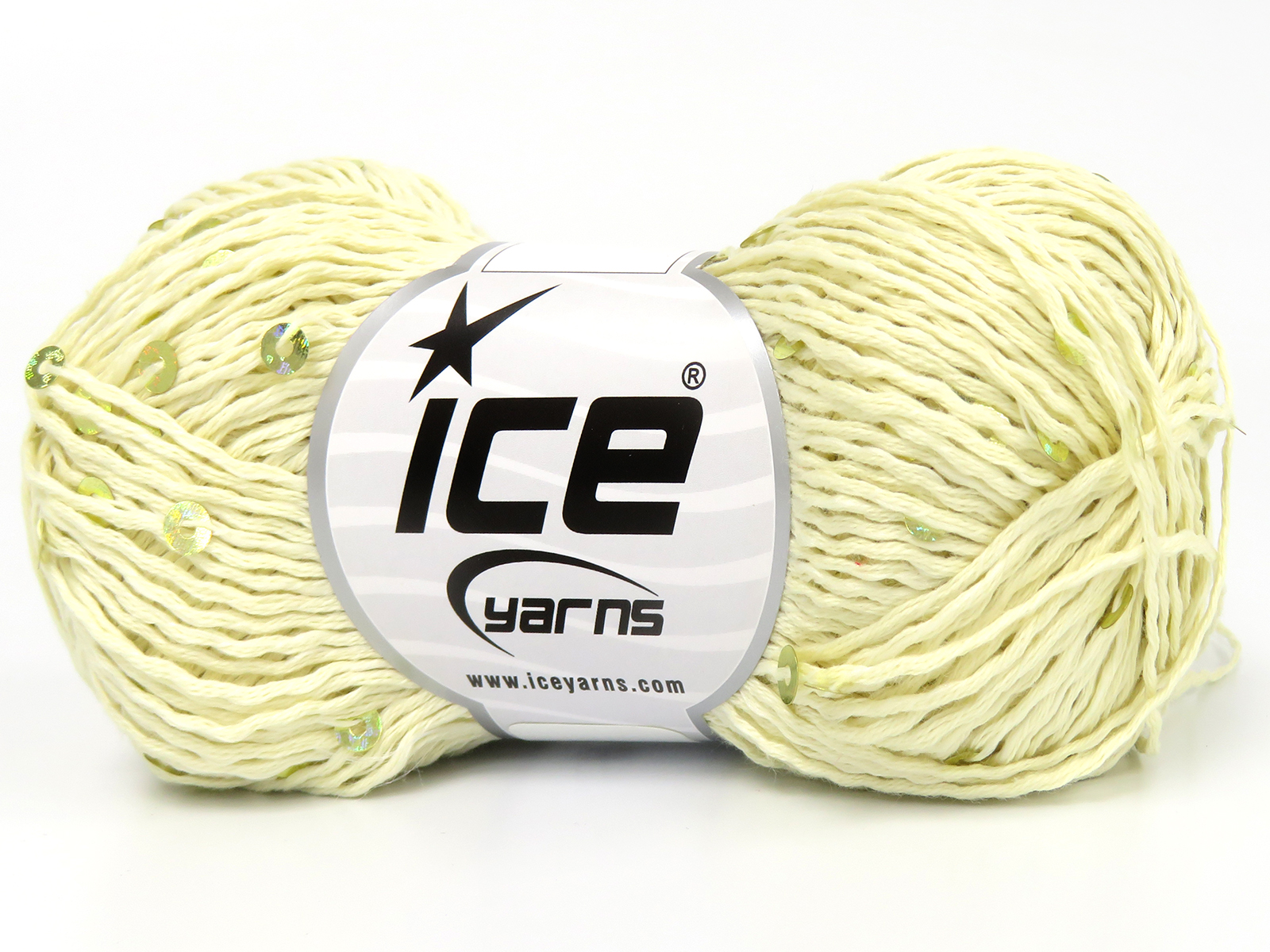 SKU:fnt2-83367 Needle Size:EU 3mm-4mm | US 3-6 Color:Light Cream Brand:Ice Yarns Length:140m 153ydper ball Fiber Content:18% Paillette, 82% Cotton Weight:50gr 1.76oz per ball