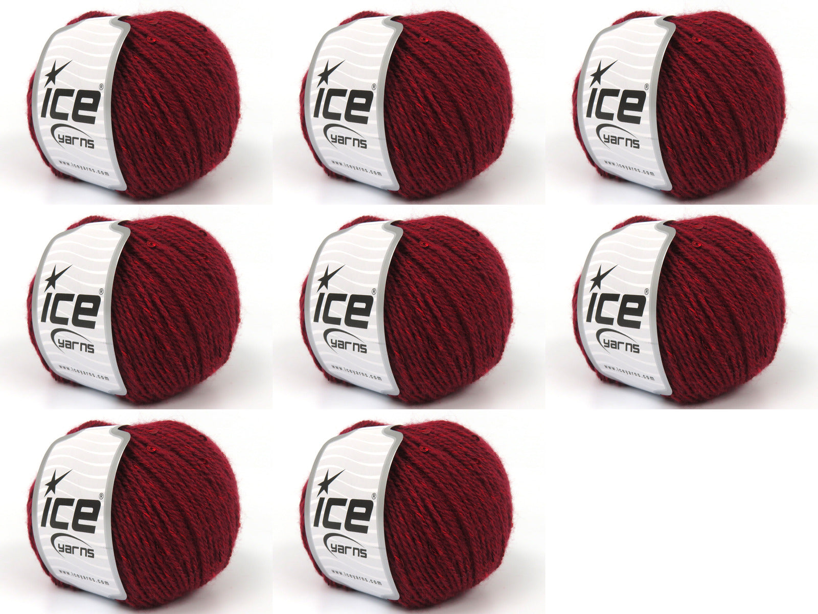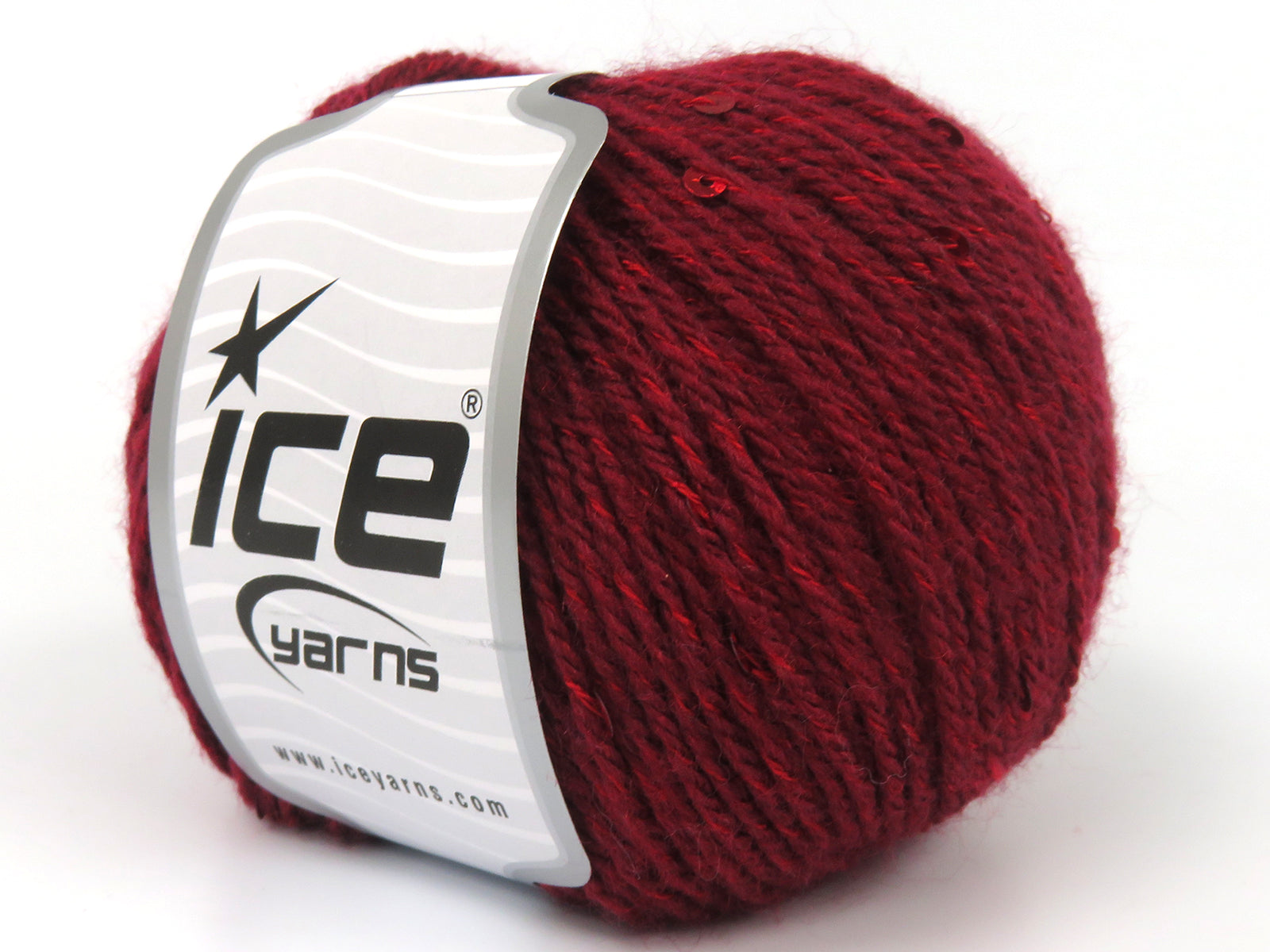 SKU:fnt2-83719 Needle Size:EU 4mm | US 6 Color:Dark Red Brand:Ice Yarns Length:125m 137ydper ball Fiber Content:6% Paillette, 94% Acrylic Weight:50gr 1.76oz per ball