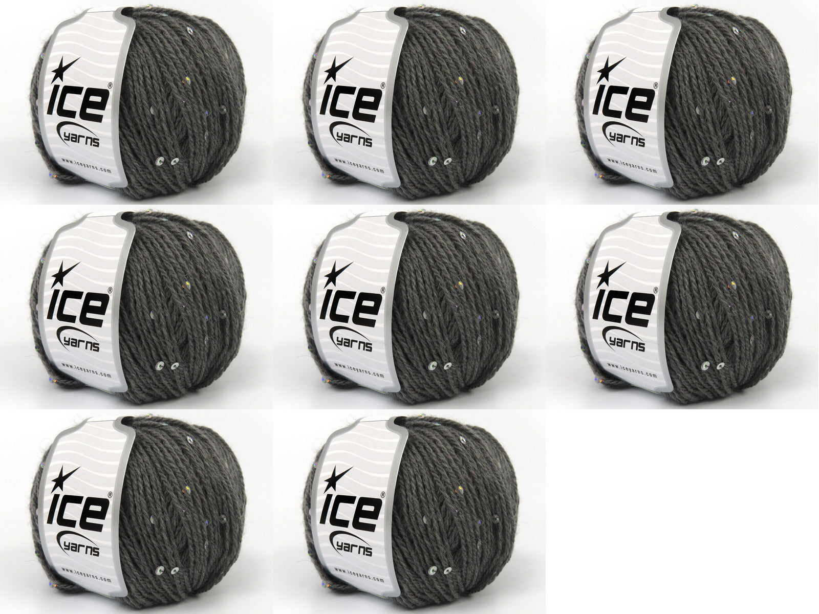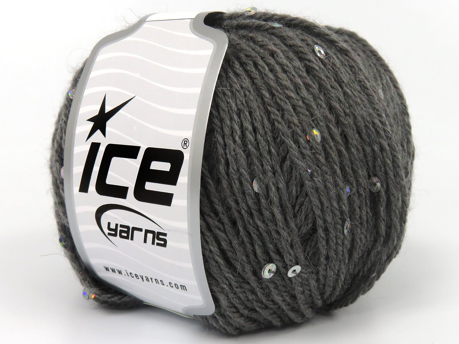 SKU:fnt2-83713 Needle Size:EU 4mm | US 6 Color:Grey Brand:Ice Yarns Length:125m 137ydper ball Fiber Content:6% Paillette, 94% Acrylic Weight:50gr 1.76oz per ball