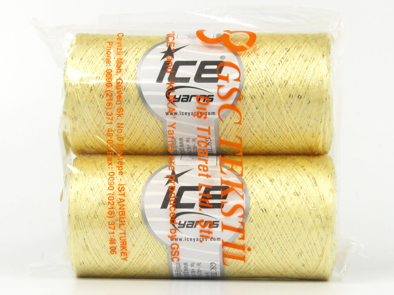 SKU:fnt2-78434 Needle Size:EU 2mm-3mm | US 0-3 Color:Dark Cream Brand:Ice Yarns Length:1600m 1750ydper ball Fiber Content:3% Paillette, 97% Polyester Weight:200gr 7.05oz per ball