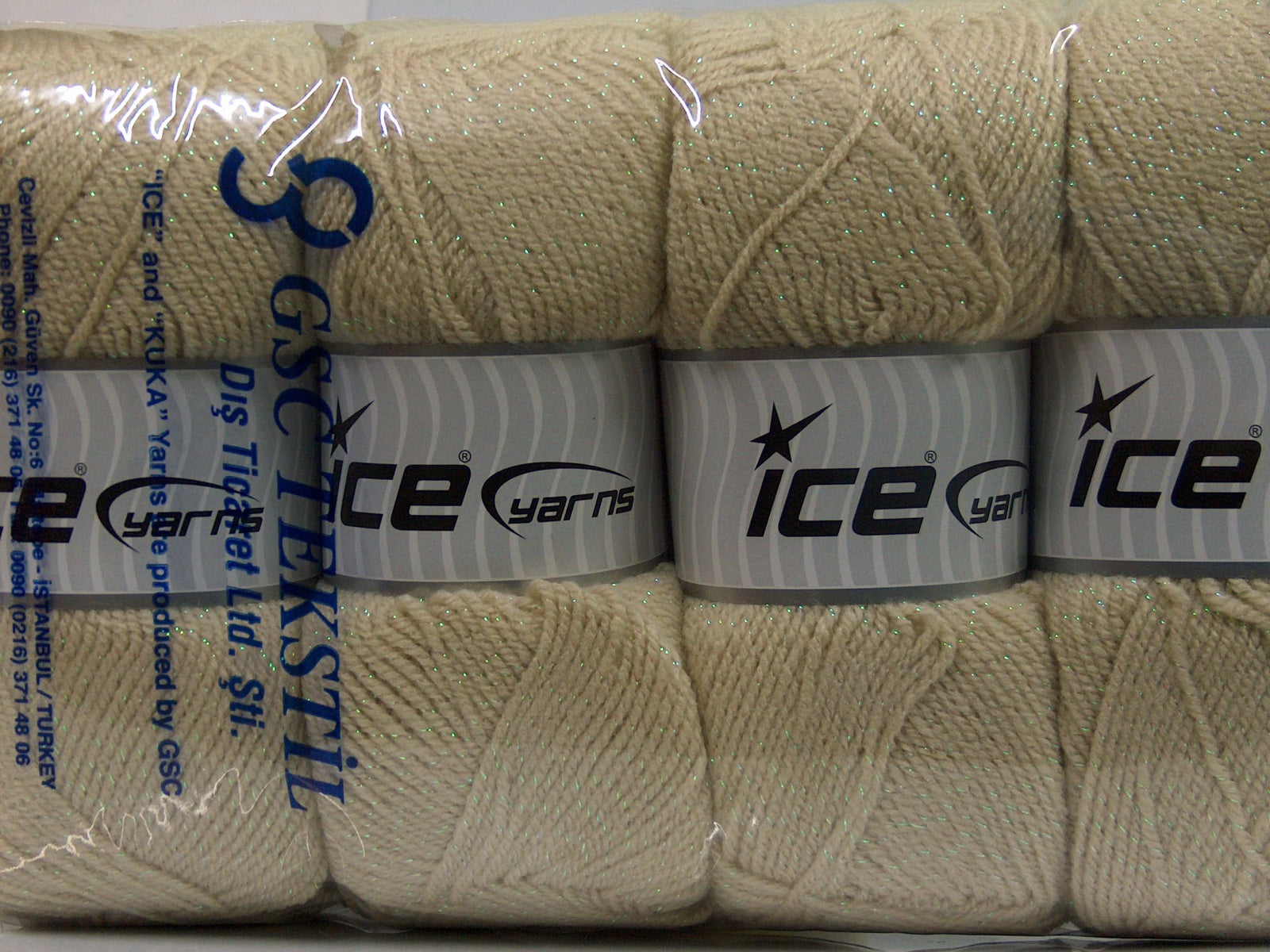 SKU:fnt2-66063 Needle Size:EU 3.5mm-4.5mm | US 4-7 Color:Light Beige Brand:Ice Yarns Length:320m 350ydper ball Fiber Content:6% Metallic Lurex, 94% Acrylic Weight:100gr 3.53oz per ball