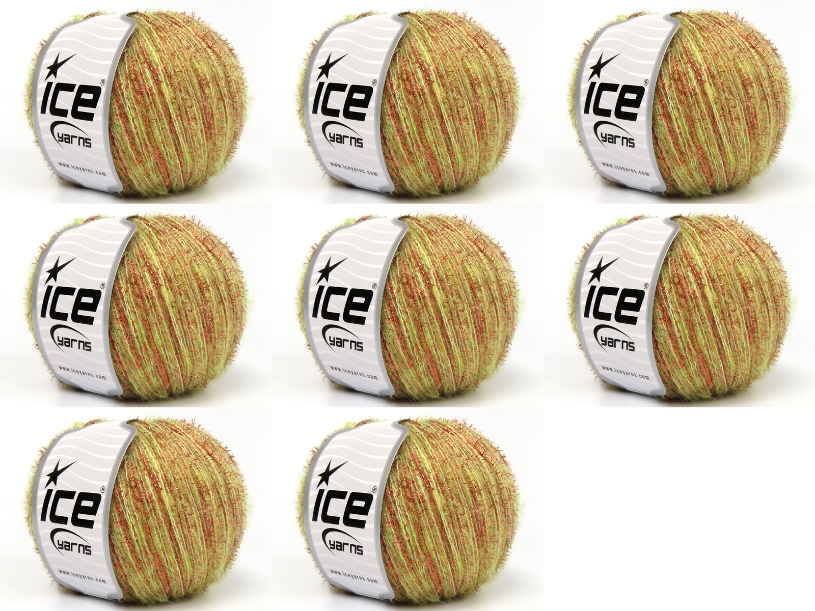 SKU:fnt2-83472 Needle Size:EU 3mm-4mm | US 3-6 Color:Copper, Light Green Brand:Ice Yarns Length:185m 202ydper ball Fiber Content:7% Wool, 33% Metallic Lurex, 10% Polyester, 50% Acrylic Weight:50gr 1.76oz per ball