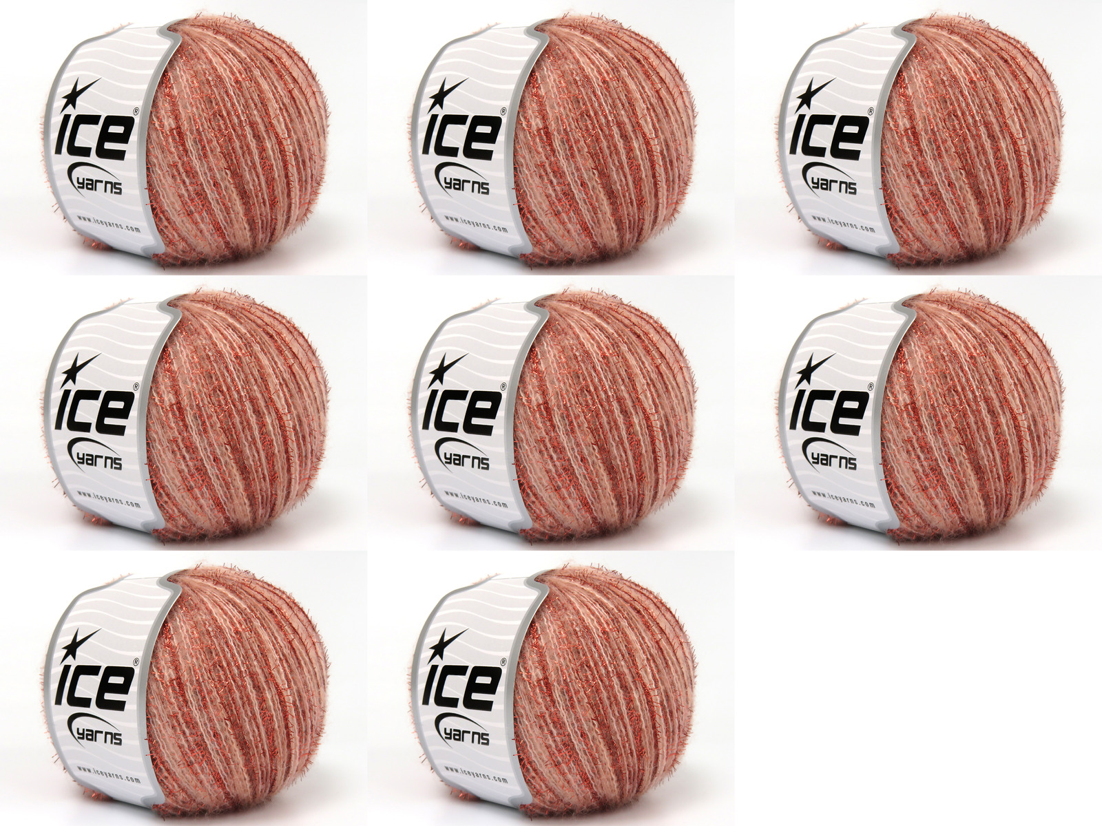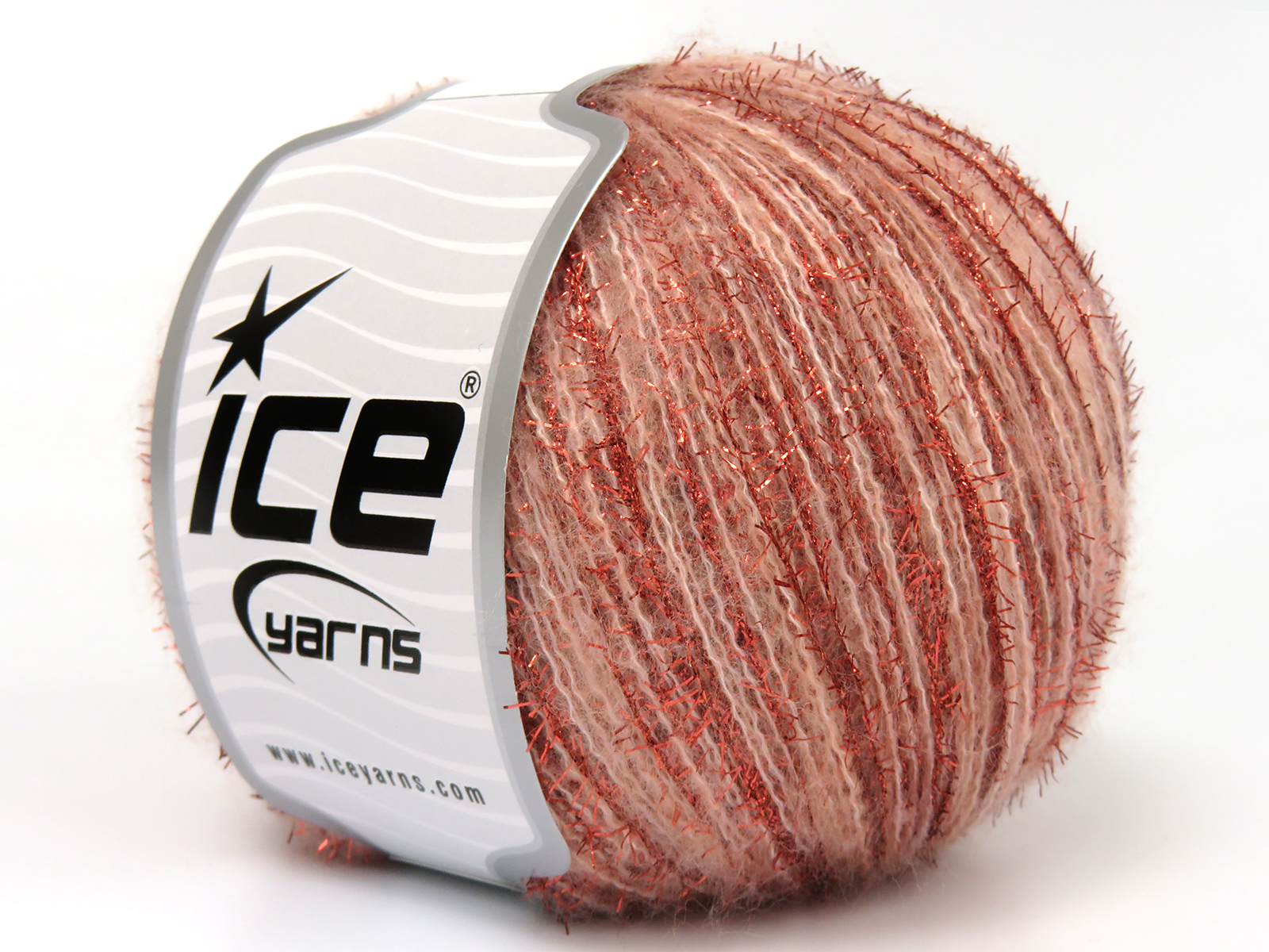 SKU:fnt2-83470 Needle Size:EU 3mm-4mm | US 3-6 Color:Light Salmon, Copper Brand:Ice Yarns Length:185m 202ydper ball Fiber Content:7% Wool, 33% Metallic Lurex, 10% Polyester, 50% Acrylic Weight:50gr 1.76oz per ball