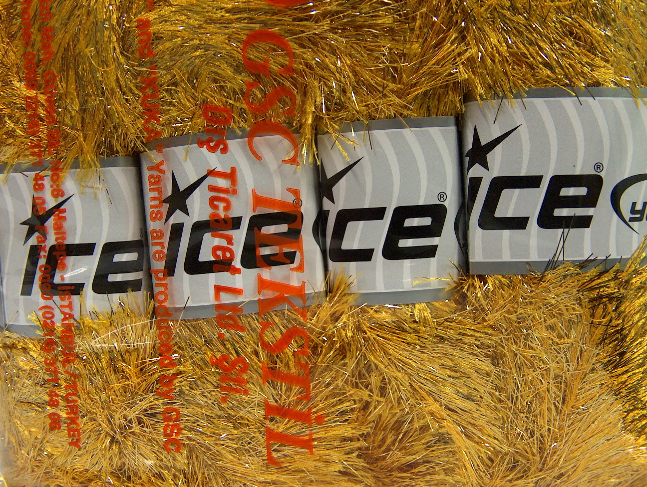 SKU:fnt2-42259 Needle Size:EU 5mm-6mm | US 8-10 Color:Gold Brand:Ice Yarns Length:110m 120ydper ball Fiber Content:25% Metallic Lurex, 75% Polyester Weight:100gr 3.53oz per ball