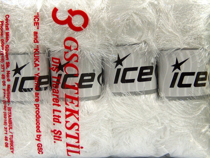 SKU:fnt2-46548 Needle Size:EU 6mm | US 10 Color:Optical White, White Brand:Ice Yarns Length:140m 153ydper ball Fiber Content:80% Polyester, 20% Lurex Weight:100gr 3.53oz per ball