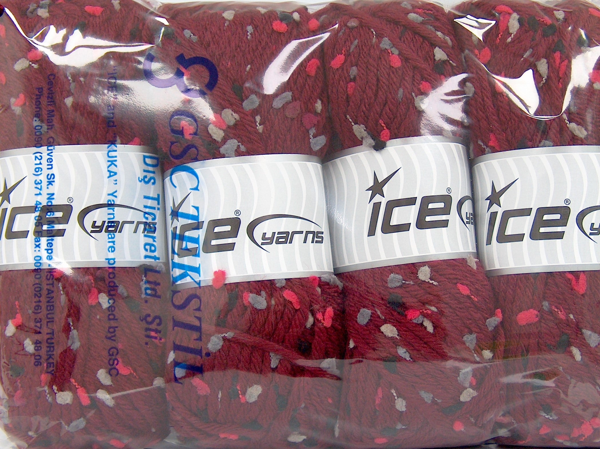 SKU:fnt2-77062 Needle Size:EU 6mm-7mm | US 10-10 1/2 Color:Burgundy Brand:Ice Yarns Length:100m 109ydper ball Fiber Content:65% Premium Acrylic, 20% Wool, 5% Polyester, 10% Polyamide Weight:100gr 3.53oz per ball