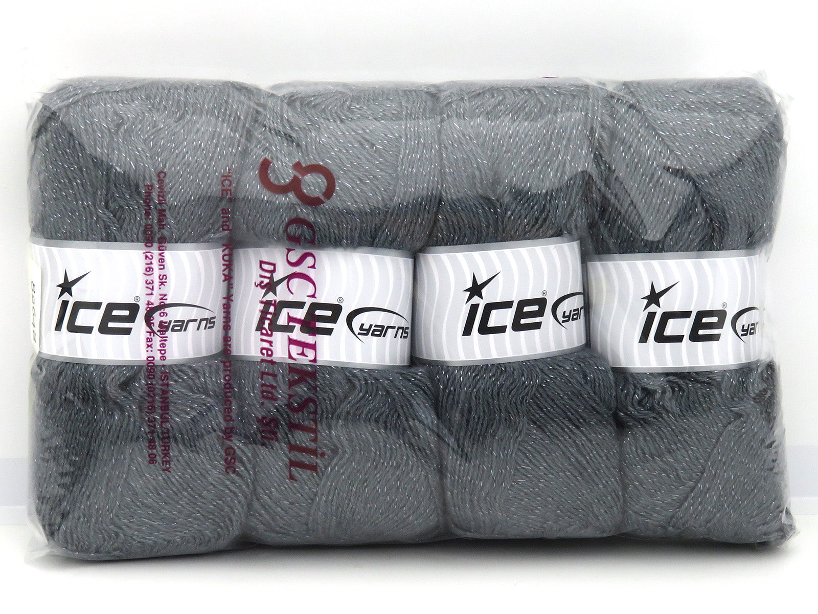 SKU:fnt2-82648 Needle Size:EU 3mm | US 3 Color:Grey Brand:Ice Yarns Length:550m 601ydper ball Fiber Content:15% Wool, 5% Metallic Lurex, 70% Acrylic, 10% Mohair Weight:100gr 3.53oz per ball