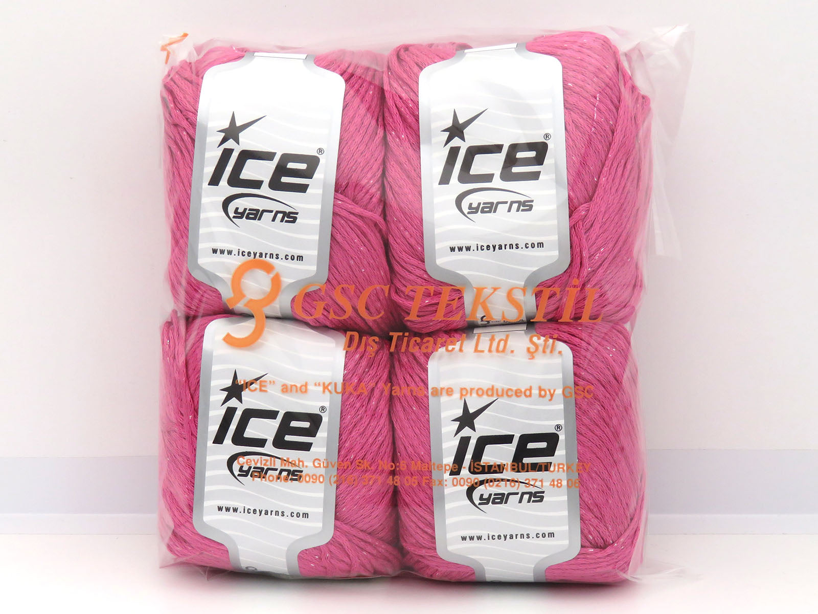 SKU:fnt2-82559 Needle Size:EU 3mm-4mm | US 3-6 Color:Candy Pink Brand:Ice Yarns Length:200m 219ydper ball Fiber Content:95% Viscose, 5% Metallic Lurex Weight:100gr 3.53oz per ball